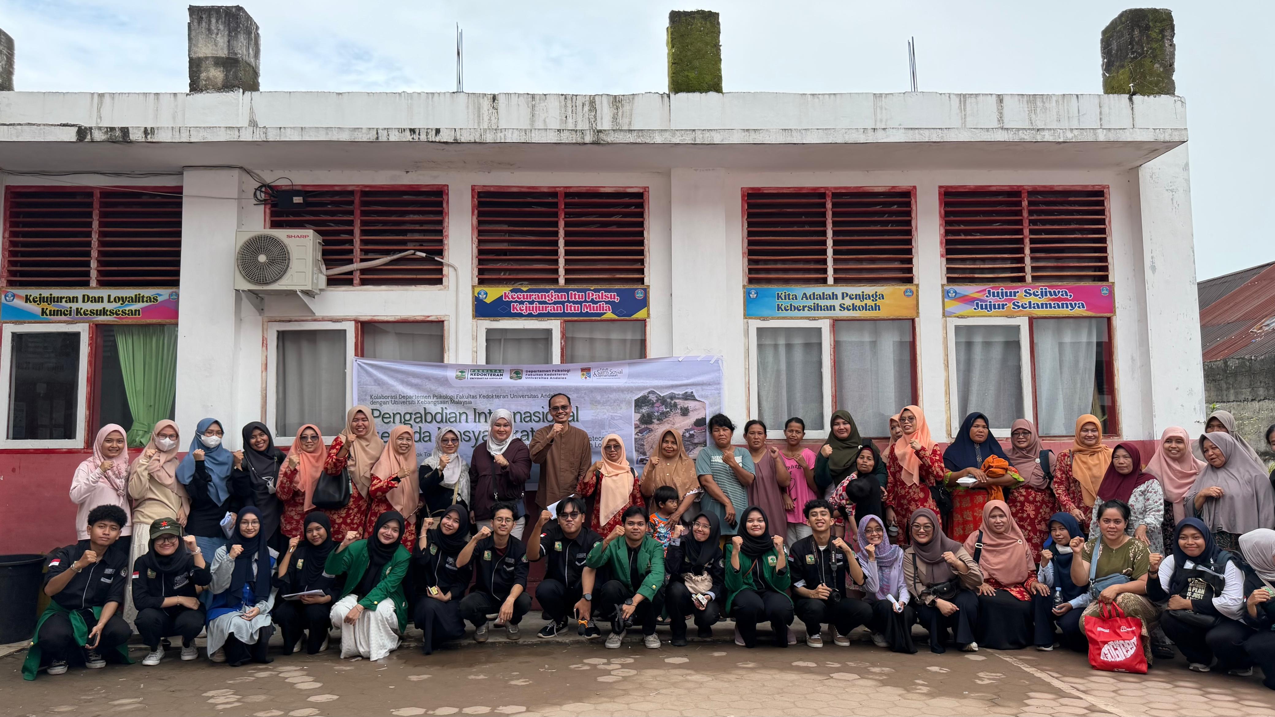Padang (UNAND) – Departemen Psikologi Fakultas Kedokteran Universitas Andalas bersama Dharma Wanita (DW) Universitas Andalas melaksanakan kegiatan Pemberian Bantuan Psikologis Awal dan Layanan Psikososial bagi penyintas bencana banjir dan longsor di SDN 02 Cupak Tangah, Kecamatan Pauh, pada Selasa (2/12).