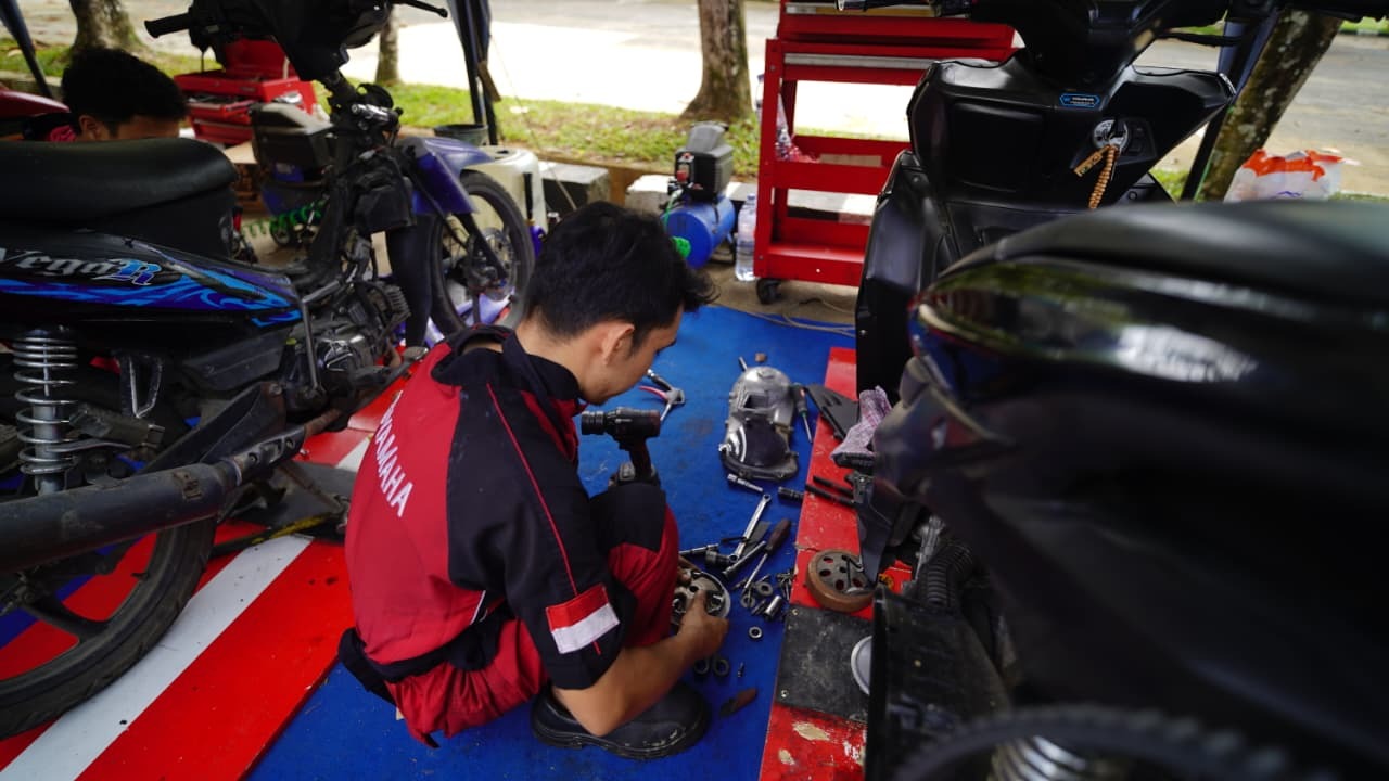 Padang (UNAND) - Universitas Andalas bekerja sama dengan Honda dan Yamaha menggelar Pelayanan Jasa Servis Motor Gratis Pascabencana Banjir yang menimpa Kota Padang, khususnya Kecamatan Pauh, pada Kamis (4/12), bertempat di Parkiran Selatan Auditorium Universitas Andalas, Limau Manis, Padang.